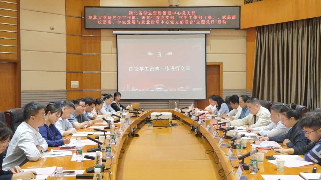2023年10月17日,湖北省學(xué)生資助管理中心黨支部,湖北大學(xué)研究生工作部、研究生院黨支部,湖北大學(xué)學(xué)生工作部、武裝部、校團(tuán)委、學(xué)生發(fā)展與就業(yè)指導(dǎo)中心黨支部聯(lián)合開(kāi)展“堅(jiān)守初心使命 聚焦學(xué)生發(fā)展 培育時(shí)代新人”主題黨日活動(dòng)。湖北省學(xué)生資助管理中心主任潘锃東、校黨委副書記侯勇參加活動(dòng)。