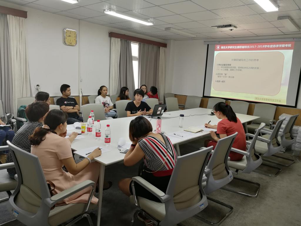 全校14名研究生兼職輔導(dǎo)員對(duì)2017-2018學(xué)年度春季學(xué)期在各學(xué)院開(kāi)展工作情況進(jìn)行了匯報(bào)交流,重點(diǎn)介紹了學(xué)院概況和特色活動(dòng)、最滿意的三項(xiàng)工作以及對(duì)研究生兼職輔導(dǎo)員工作的意見(jiàn)和建議。匯報(bào)結(jié)束后,參會(huì)評(píng)委對(duì)研究生兼職輔導(dǎo)員的述職進(jìn)行了考核評(píng)分。