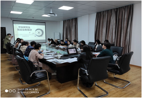 為更好地開展研究生就業(yè)工作,提高研究生兼職輔導(dǎo)員的業(yè)務(wù)能力,2019年10月 23日下午5:00在計(jì)信學(xué)院501會(huì)議室,研究生院就業(yè)指導(dǎo)辦公室呂曉蕓老師為各學(xué)院研究生兼職輔導(dǎo)員開展就業(yè)業(yè)務(wù)培訓(xùn)。