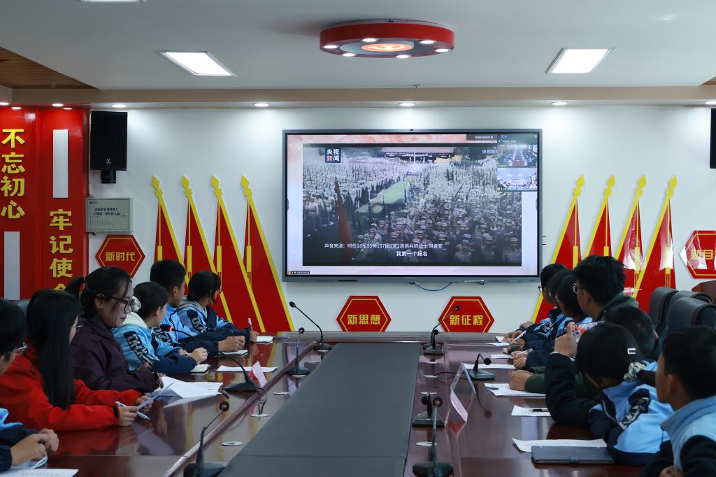 活動(dòng)最后,兩地師生隔著屏幕云端定格下這一難忘瞬間。此次“云端”團(tuán)課是兩地合作共建的深化延續(xù),鄂藏學(xué)子在跨域共讀互動(dòng)中增進(jìn)了對(duì)黨的二十屆四中全會(huì)精神的理解,以更加昂揚(yáng)的姿態(tài)傳承紅色基因血脈,踐行民族團(tuán)結(jié)使命,展現(xiàn)出新時(shí)代青年聽(tīng)黨話、跟黨走,同心共筑中國(guó)夢(mèng)的堅(jiān)定信念與青春擔(dān)當(dāng)。