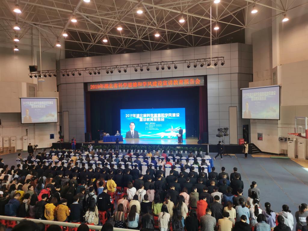 10月29日,湖北大學(xué)新入職教師、研究生導(dǎo)師與研究生代表40余人赴華中科技大學(xué)韻苑體育館參加2019年湖北省科學(xué)道德和學(xué)風(fēng)建設(shè)宣講教育報(bào)告會(huì)。報(bào)告會(huì)旨在大力發(fā)揚(yáng)新時(shí)代科學(xué)家精神,恪守科學(xué)道德、弘揚(yáng)學(xué)術(shù)誠(chéng)信、共建優(yōu)良學(xué)風(fēng)。中國(guó)科學(xué)院院士、肝膽胰外科領(lǐng)域?qū)<摇⑷A中科技大學(xué)同濟(jì)醫(yī)學(xué)院附屬同濟(jì)醫(yī)院外科學(xué)系主任、肝膽胰外科研究所所長(zhǎng)陳孝平教授作了宣講報(bào)告。