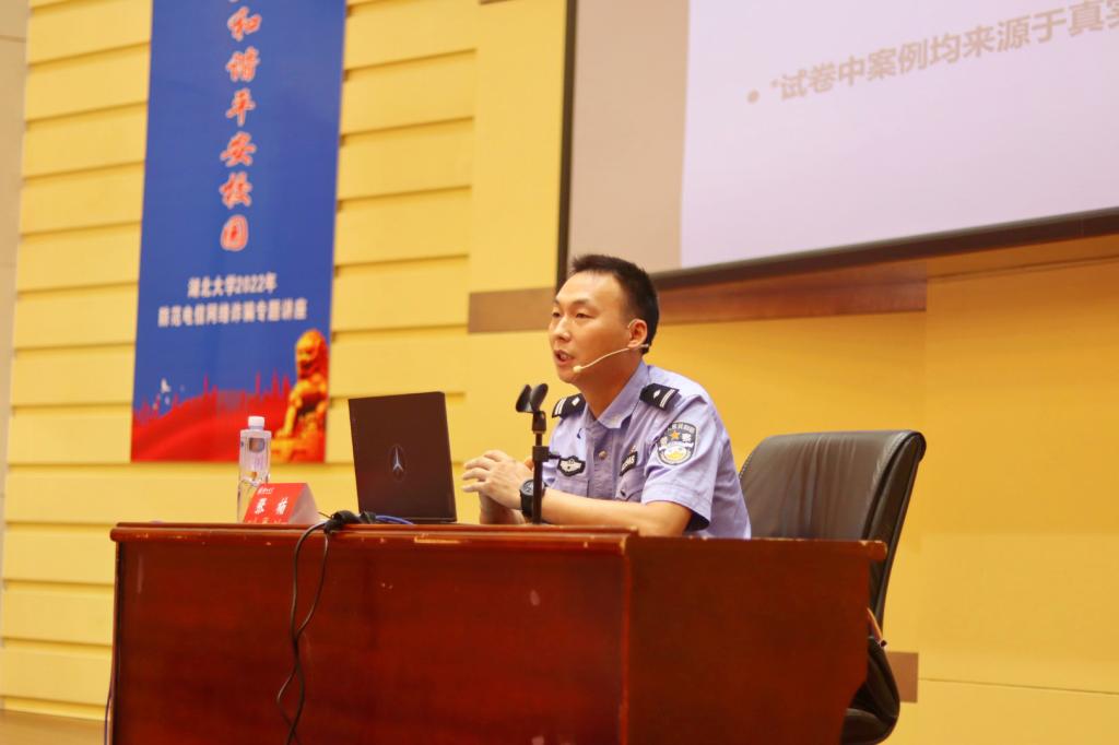 為進(jìn)一步提高學(xué)校研究生對各類電信網(wǎng)絡(luò)詐騙的鑒別能力和自我防范意識,9月21日,學(xué)校開展防范電信網(wǎng)絡(luò)詐騙專題報(bào)告會。武昌區(qū)公安分局打擊網(wǎng)絡(luò)犯罪中心副主任張楠應(yīng)邀作專題輔導(dǎo)報(bào)告。余家頭派出所副所長袁巍,余家頭派出所民警黃華,學(xué)生工作部、研究生工作部、安全保衛(wèi)部負(fù)責(zé)人及各學(xué)院輔導(dǎo)員、學(xué)生骨干參加會議。