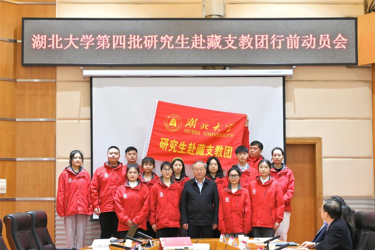 13名研究生出發(fā)的前一天,湖北大學(xué)為學(xué)子們送行。該校黨委書記謝紅星為支教團授旗,并殷殷寄語學(xué)子們:“支教是一件光榮且神圣的事。青春要在奮斗中釋放光芒,生命要在奉獻中實現(xiàn)價值。”他指出,研究生赴藏支教團已成為湖大一張亮麗的名片,希望支教團成員加強實踐鍛煉,在支教中著力提升思想境界、職業(yè)能力,實現(xiàn)支教與學(xué)業(yè)齊頭并進。