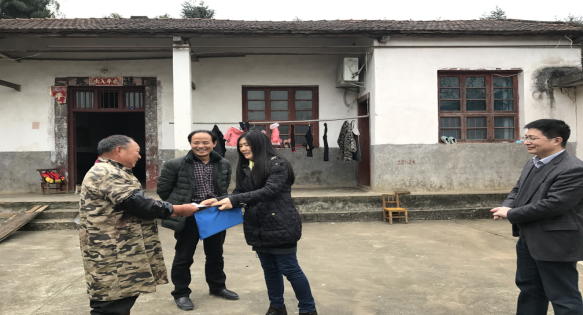 村委會(huì)姚主任陪同周芳副院長(zhǎng)、王雄副書記、研究生高靜等同學(xué)們看望了村里10多戶貧困家庭,送去慰問金。