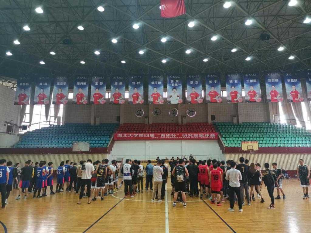 2019年4月23日中午12點,由湖北大學研究生工作部主辦、湖北大學研究生會承辦的一次籃球比賽盛會拉開了序幕!校體委秘書長、體育學院副院長曾吉,研究生工作部副部長葉秀娟,各參賽隊領隊老師,裁判員及各學院參賽人員出席了開幕式。