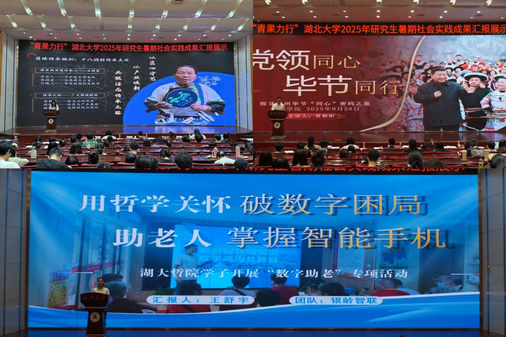 支點揚帆正當(dāng)時,挺膺擔(dān)當(dāng)?shù)Z青春。2025年暑期,我校72支研究生社會實踐團隊奔赴全國各地,深入基層一線,以汗水澆灌理想,以實干詮釋擔(dān)當(dāng),在火熱的社會實踐中書寫新時代青春答卷。9月28日下午,“青果力行”湖北大學(xué)2025年研究生暑期社會實踐成果匯報展示活動在會議中心思睿廳順利舉行。學(xué)校相關(guān)職能部門負責(zé)人、各學(xué)院師生代表齊聚一堂,活動由校研究生會陳乾同學(xué)主持。